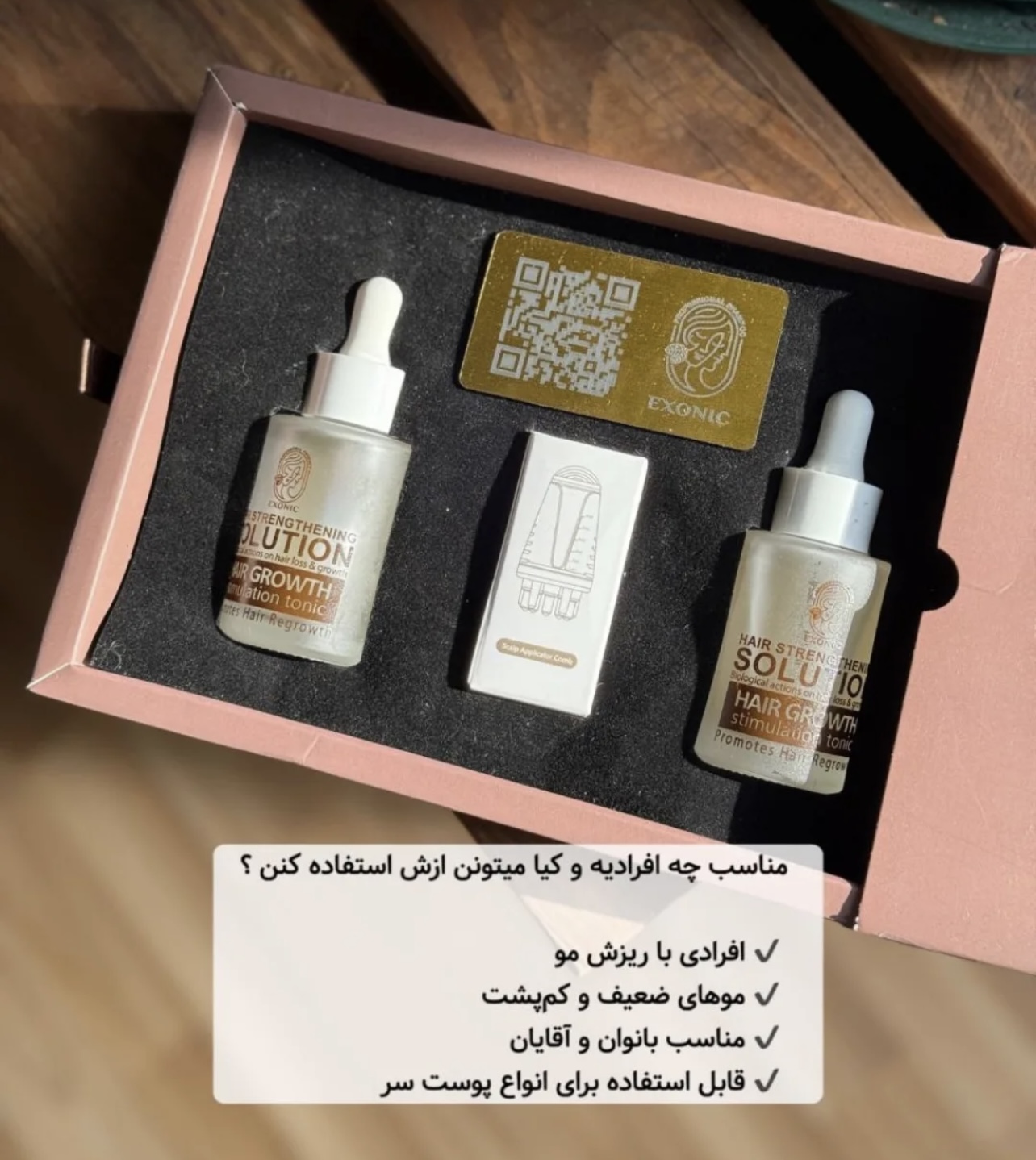 - تونیک قطع ریزش اکسونیک با تمرکز بر تقویت فولیکولهای مو طراحی شده است. این محصول مستقیماً روی پوست سر استفاده میشود و با تحریک گردش خون موضعی، به بهبود تغذیهرسانی به ریشه مو کمک میکند. در نتیجه، تارهای مو قویتر شده و روند ریزش کنترل میشود.